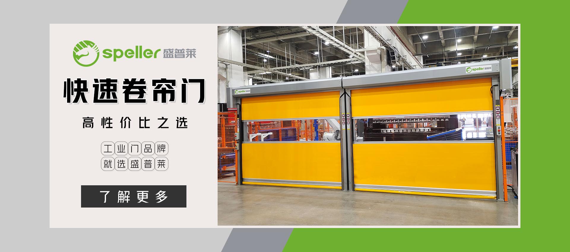 ???? ? 盛普萊門業制造(江蘇)有限公司,專為研發(fā)、生產、銷售普及型工業門而創(chuàng)立,核心團隊由行業中富有經驗的技術研發(fā),生產制造,營銷管理等專業人才組成。立志將“盛普萊”品牌成為高性價比、普及型工業門的行業品牌代名詞。專注于快速卷簾門、工業提升門、硬質快速門、潔凈室快速門、堆積式快速門、保溫快速門、物流裝卸貨平臺、工業門封等普及型工業門系列近70款產品的技術開發(fā)、設計制造、銷售安裝以及售后服務,按照行業標準持續(xù)技術創(chuàng)新,產品擁有多項核心技術與權威認證。市場立足蘇州,緊密聯動江、浙、滬長三角地區,銷售網絡遍布全國幾十個主要工業城市,在全國設立了近百個服務網點,有效的服務半徑內,實現7×12小時全時段便捷化服務。